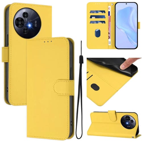 Funda de Cuero Nxtpaper para TCL 50 Pro con Textura de Piel y Cordón (Amarillo Limón)