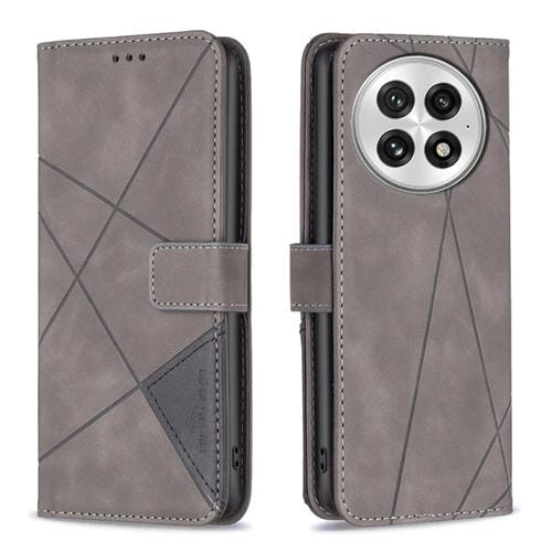 Funda de Cuero con Textura de Rombos y Hebilla Magnética para OnePlus 13 Bf05 (Gris)