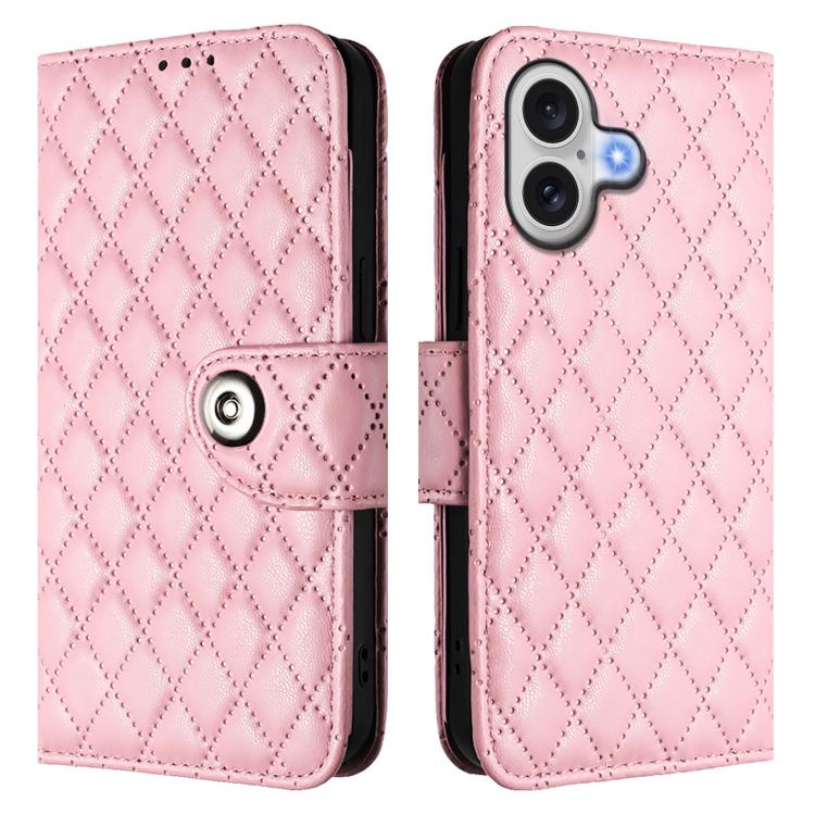 Funda de cuero con textura rómbica y cordón para iPhone 17 (rosa)
