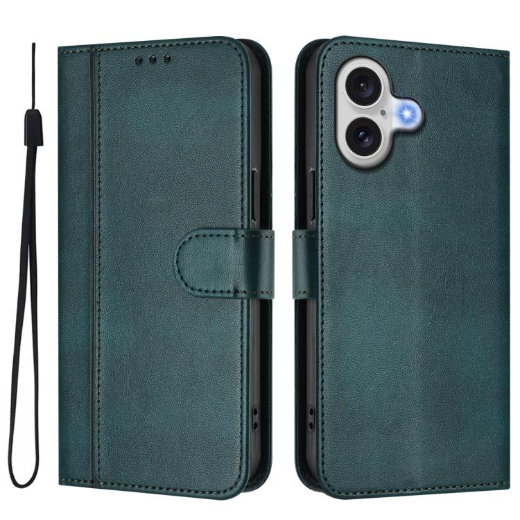 Funda de cuero retro con hebilla y empalme de líneas para iPhone 17 (verde oscuro)