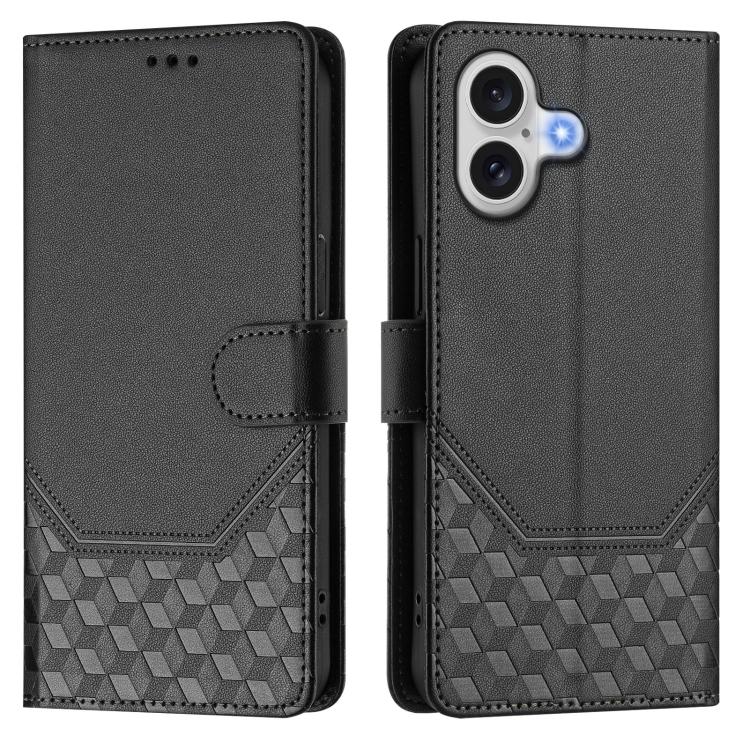 Funda de cuero RFID con relieve de panal para iPhone 17 (negra)