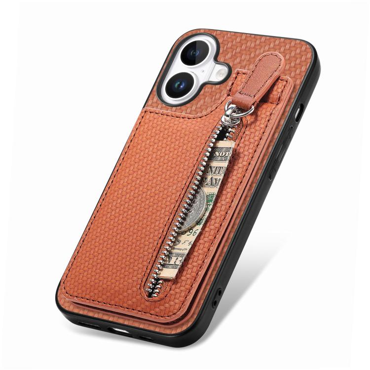 Funda de fibra de carbono con cremallera vertical para iPhone 17 (marrón)