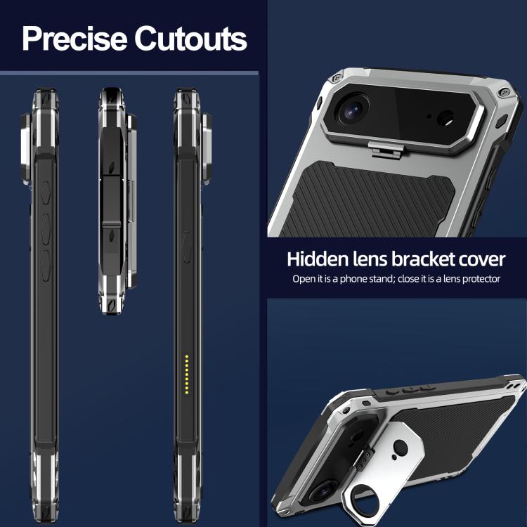 Funda de metal con soporte para lente de iPhone Air, resistente al agua IP54, triple protección MagSafe (plateada)