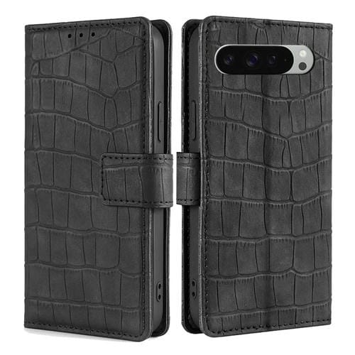 Funda de Piel para Google Pixel 9 Pro XL con Cierre Magnético y Diseño de Cocodrilo (Negra)