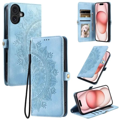 Funda de Piel con Relieve Totem para iPhone 16 Plus (Azul)