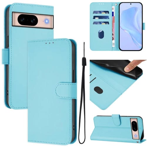 Funda de Piel para Google Pixel 8A con Cordón y Tacto Suave (Azul Cielo)