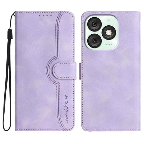 Funda de Piel Sintética con Diseño de Corazón para Teléfono Itel A50 (Morado)