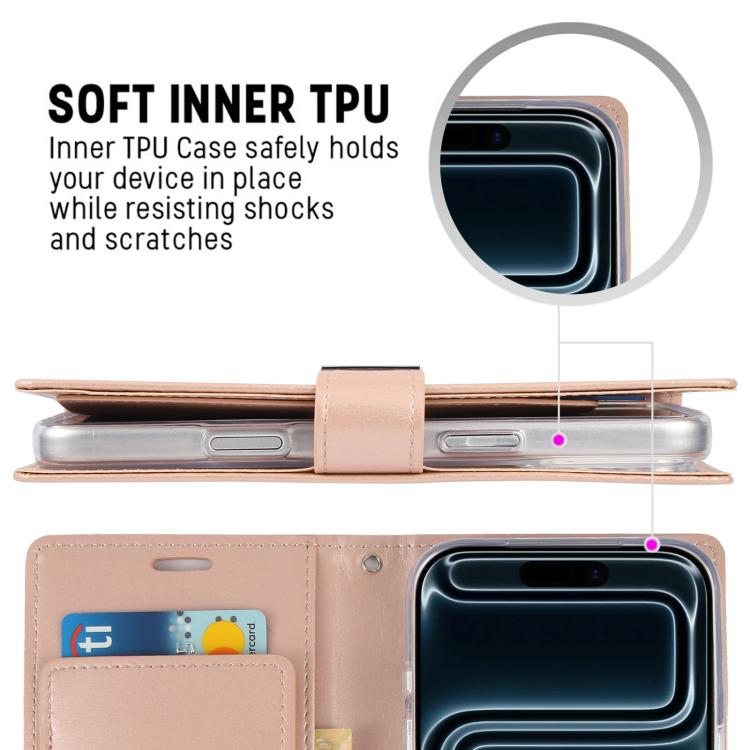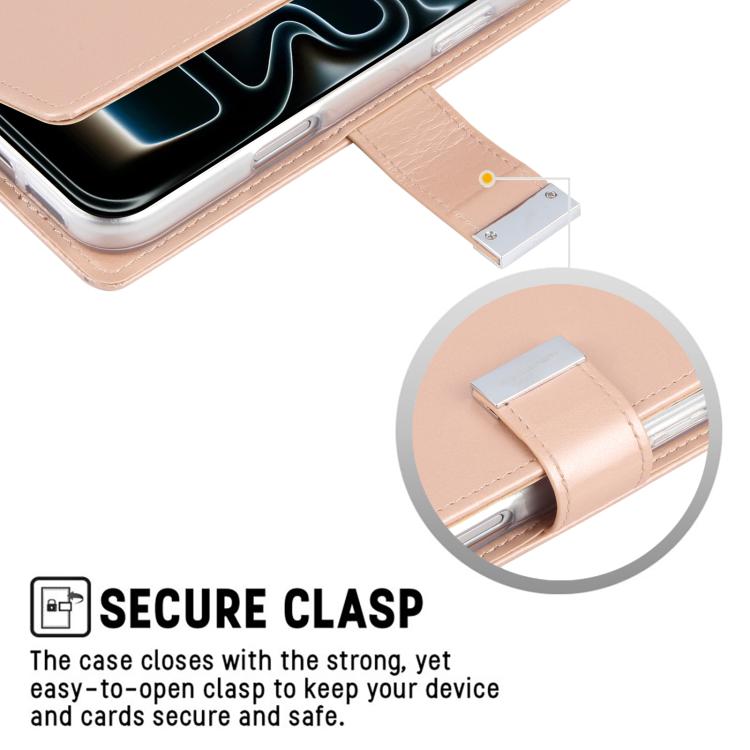 Funda de piel texturizada Crazy Horse GOOSPERY RICH DIARY para iPhone 17 Pro Max (Oro rosa)