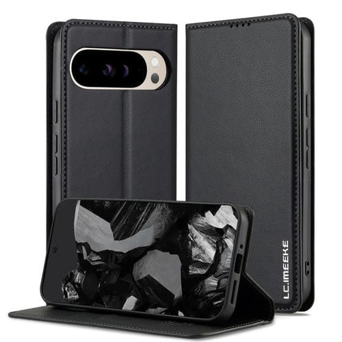 Funda de teléfono PU Google Pixel 9 Pro XL Lc.Imeeke L1 Series con textura fina esmerilada (Negra)