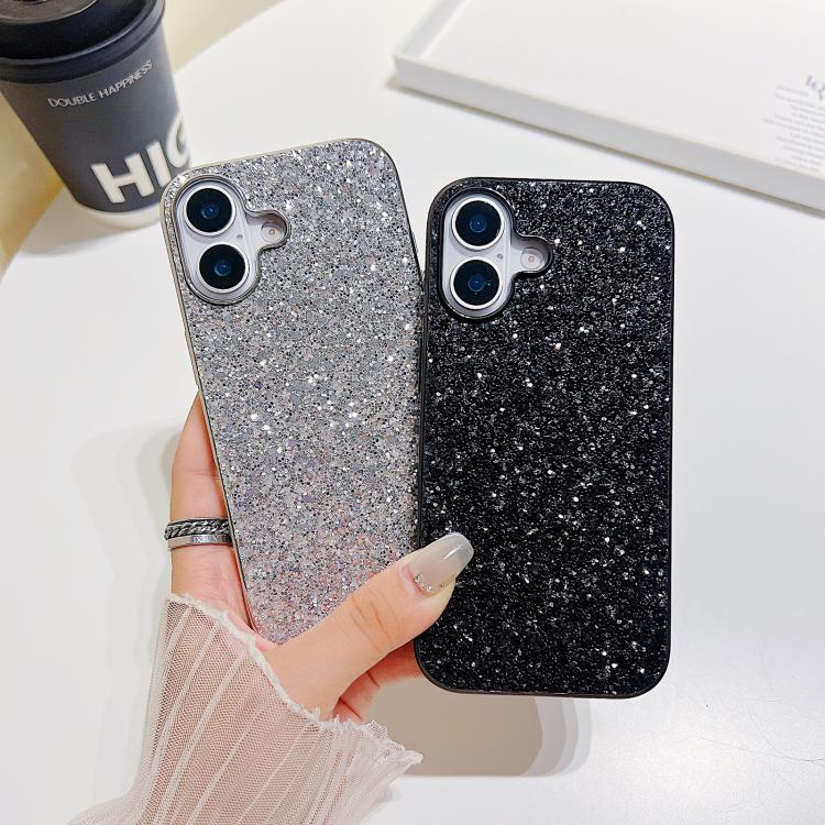Funda de TPU a prueba de golpes con purpurina en polvo para iPhone 17 (negra)