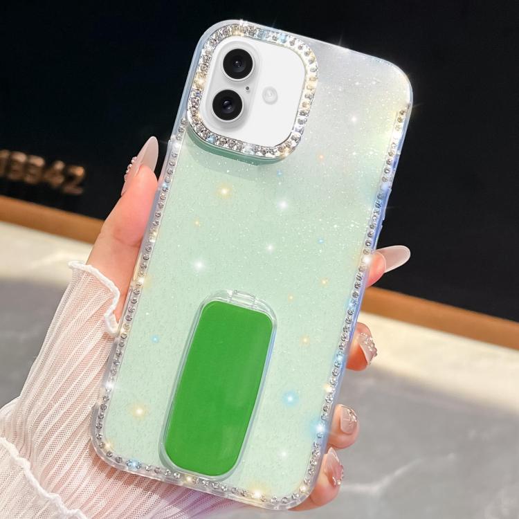 Funda de TPU con purpurina y diamantes de imitación para iPhone 17, anticaídas, con 4 esquinas y soporte (verde claro)