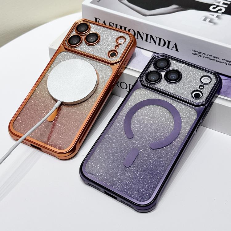 Funda de TPU MagSafe con ventana grande, brillo degradado, mate y galvanizada para iPhone 17 Pro Max (morado)