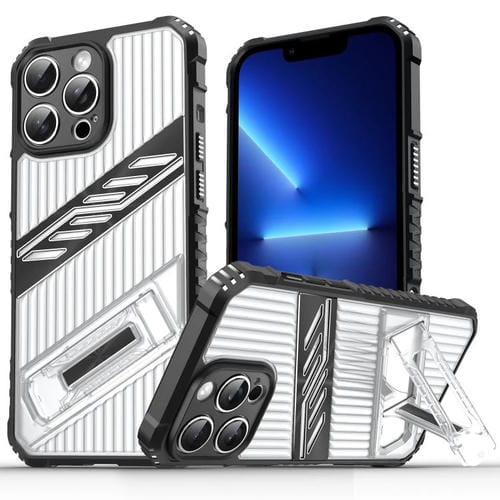 Funda híbrida TPU iPhone 13 Pro soporte PC (Negro Transparente)