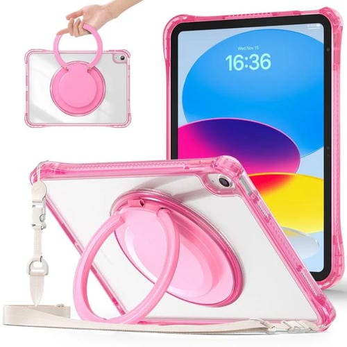 Funda Híbrida TPU para iPad 2025/2022 con Asa de Anillo Giratorio (Rosa Roja)