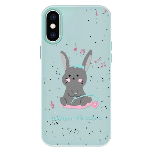 Funda híbrida TPU y Policarbonato para iPhone X/Xs Escucha Música Conejo (Verde Claro)