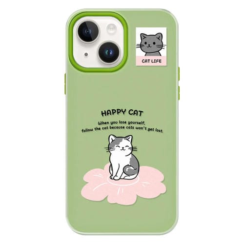 Funda Híbrida TPU Policarbonato para iPhone 15 Plus con Tacto Sedoso (Happy Cat Green)