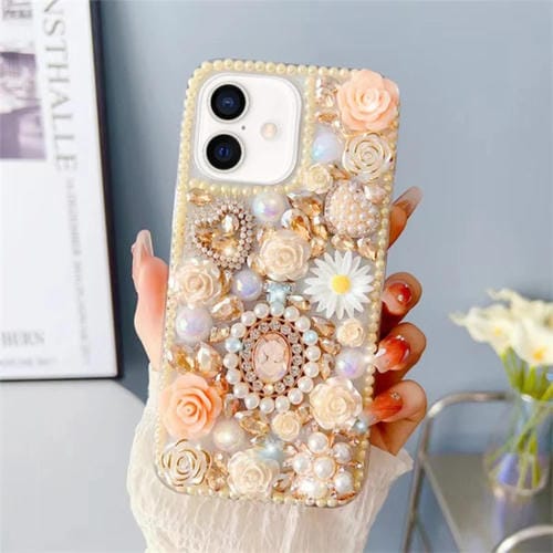 Funda para iPhone 16 Diseño de Rosa con Incrustaciones de Diamantes (Amarilla)