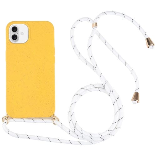 Funda para iPhone 16 Plus TPU a Prueba de Golpes con Paja de Trigo y Cordón para El Cuello (Amarillo)