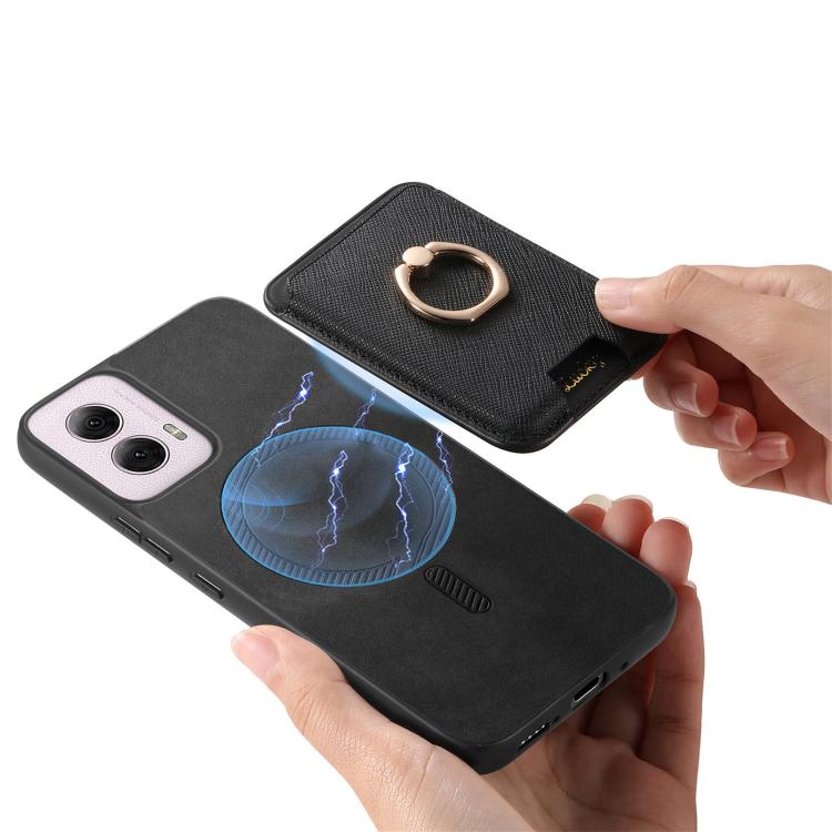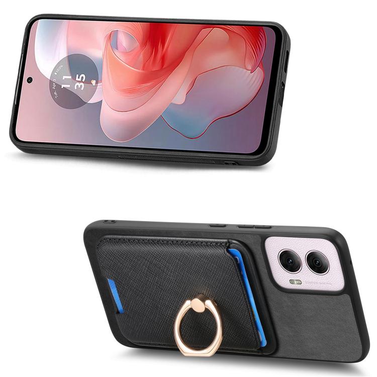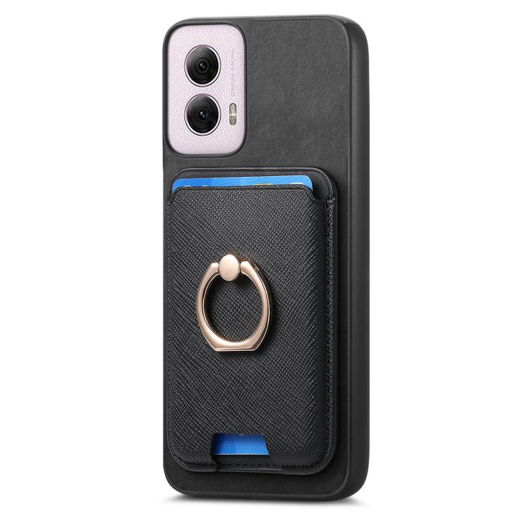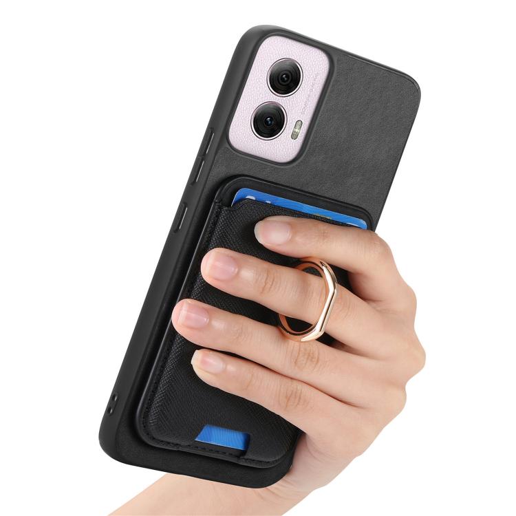 Funda para Motorola Moto G Power 5G (2024) con Ranuras para Tarjetas y Anillo de Cuero (Negro)