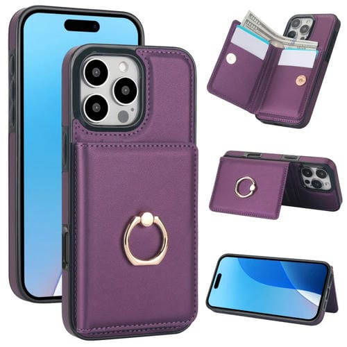 Funda para Teléfono iPhone 16 Pro con Anillo y Tarjeta Antirrobo Rfid (Morado Oscuro)