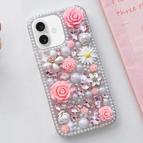 Funda para Teléfono iPhone 16 Diseño Diamante Engastado a Mano (Rosa)
