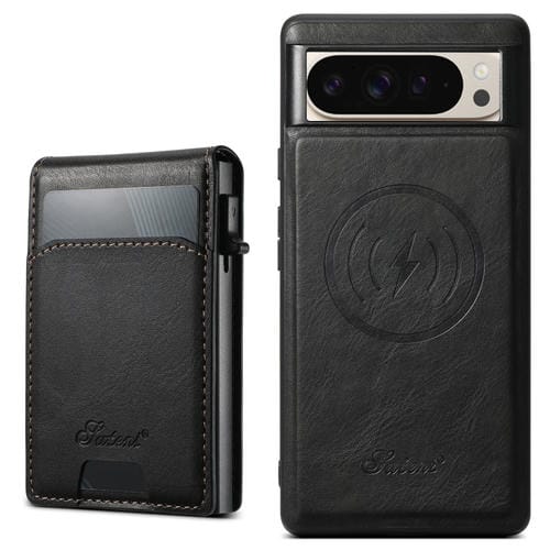 Funda para Teléfono Suteni H19 Oil Wax 2 en 1 con Tapa Extraíble, Ranuras y Atril para Google Pixel 9 Pro XL (Negra)