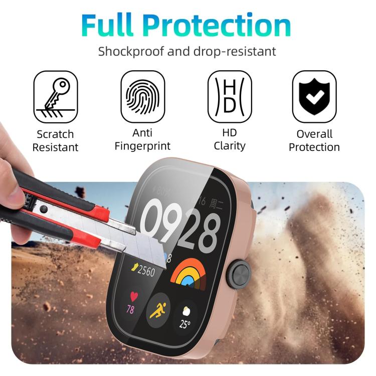 Funda protectora para reloj Redmi Watch 4 xDfind con película templada integrada para PC (rosa)