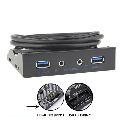 El Panel Frontal para unidad de disquete de PC de escritorio de 3,5 pulgadas es un componente diseñado para reemplazar la antigua unidad de disquete inactiva, proporcionando una solución moderna para la conectividad Frontal. Este Panel incorpora dos Puertos USB 3.0 de alta velocidad y una interfaz de audio HD para facilitar el acceso a periféricos y dispositivos de audio sin necesidad de acceder a la parte Trasera del equipo. Compatible con Placas Base que dispongan de una interfaz de audio HD-AUDIO y un Conector de 19 pines, este accesorio se instala fácilmente en la bahía estándar de 3,5 pulgadas del Chasis del ordenador, con dimensiones de 102,2 mm de ancho, 25,2 mm de alto y 94 mm de profundidad. Su función principal es ofrecer una interfaz ergonómica y accesible para conexiones USB y audio en equipos de escritorio.