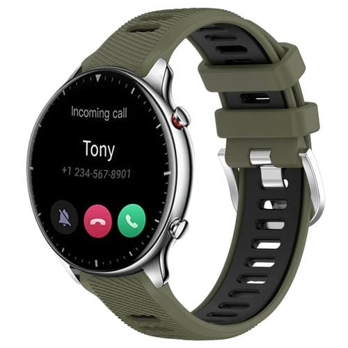 Correa de Reloj Amazfit GTR 2 silicona 22mm con hebilla acero (Verde Militar + Negro)