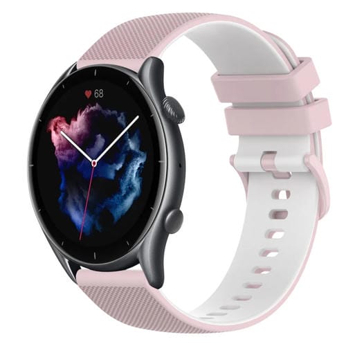 Correa de Reloj Amazfit GTR 3 Pro 22mm Silicona Dos Colores a Cuadros (Rosa + Blanco)