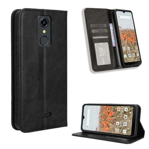 Funda para teléfono Consumer Cellular Iris Connect cuero textura retro con hebilla magnética (Negro)