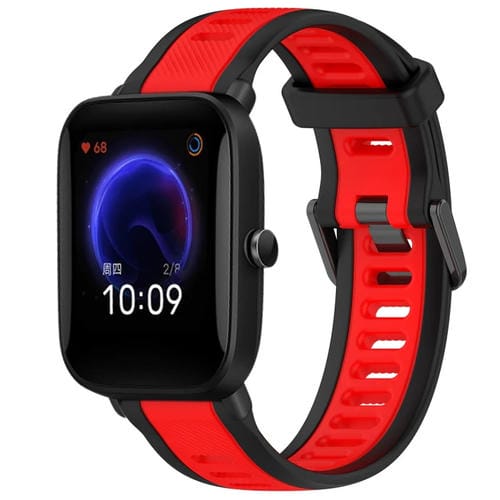 Correa de Reloj Silicona Texturizada 20mm para Amazfit Pop (Rojo + Negro)