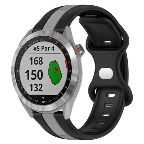 Correa de Reloj Garmin Approach S40 Silicona Dos Colores con Hebilla de Mariposa 20mm (Negro + Gris)