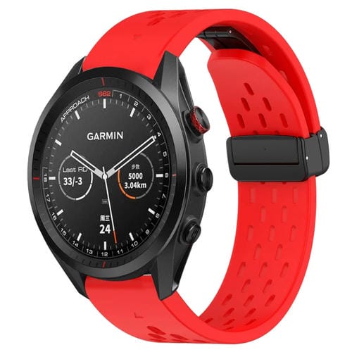 Correa de Reloj de Silicona para Garmin Approach S62 con Orificio y Hebilla Plegable 22mm (Rojo)