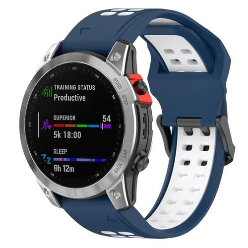 Correa de Reloj 22mm Garmin Descent G1 Coros Vertix Silicona Doble Fila Liberación Rápida (Azul Blanco)