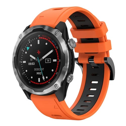 Banda de Reloj de Silicona Deportiva para Garmin Descent Mk 2 26mm (Naranja + Negro)