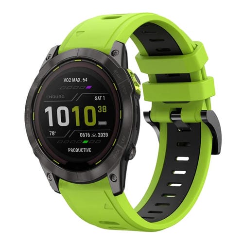 Banda de Reloj de Silicona Deportiva para Garmin Enduro 2 26mm (Verde Lima + Negro)