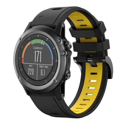 Banda de Reloj Garmin Fenix 3 26mm Silicona Deportiva Dos Colores (Negro + Amarillo)