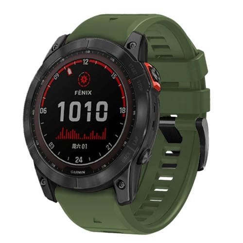 Correa de Reloj Garmin Fenix 7X 26mm Silicona Liberación Rápida con Hebilla Acero (Verde Militar)