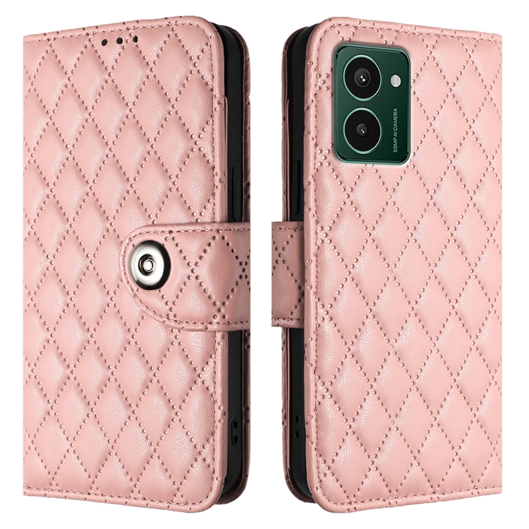 Funda de Cuero con Tapa para Hmd Pulse Pro con Textura Rómbica y Cordón (Rosa Coral)