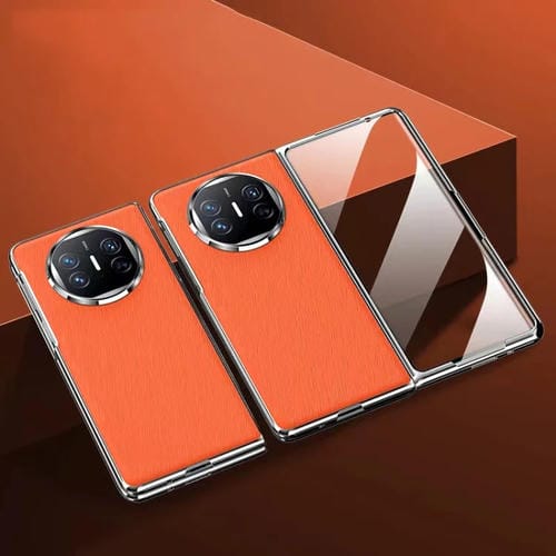 Funda para Huawei Mate X3 a Prueba de Golpes con Textura de Cuero y Revestimiento Integrado (Naranja)