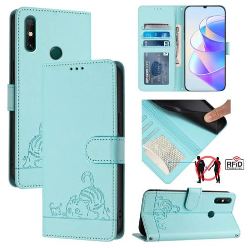 Estuche para Huawei P Smart 2021 4G de Cuero Rfid con Patrón en Relieve y Cordón (Verde Menta)