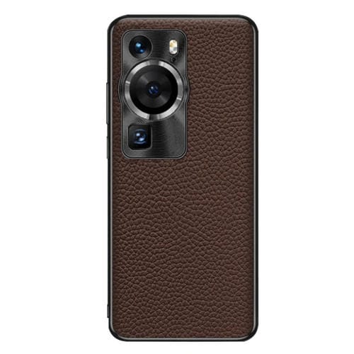 Funda de Teléfono Huawei P60 Pro Cuero Genuino Textura Litchi (Café)