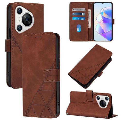 Funda de Cuero para Huawei Pura 70 Crossbody con Tapa en Relieve 3D (Marrón)