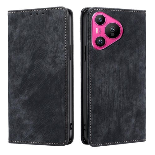 Funda de Cuero Magnética para Huawei Pura 70 con Cepillo Antirrobo RFID (Negro)