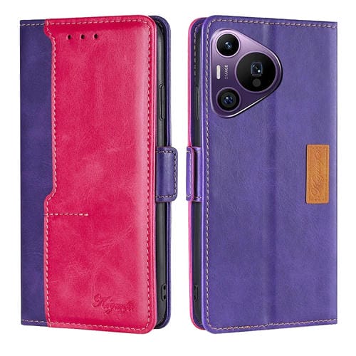 Funda de Cuero para Huawei Pura 70 Pro y 70 Pro + 5G con Hebilla Lateral (Púrpura + Rojo Rosa)