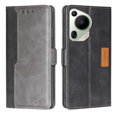 Funda de Cuero para Huawei Pura 70 Ultra 5G con Hebilla Lateral en Contraste (Negro + Gris)