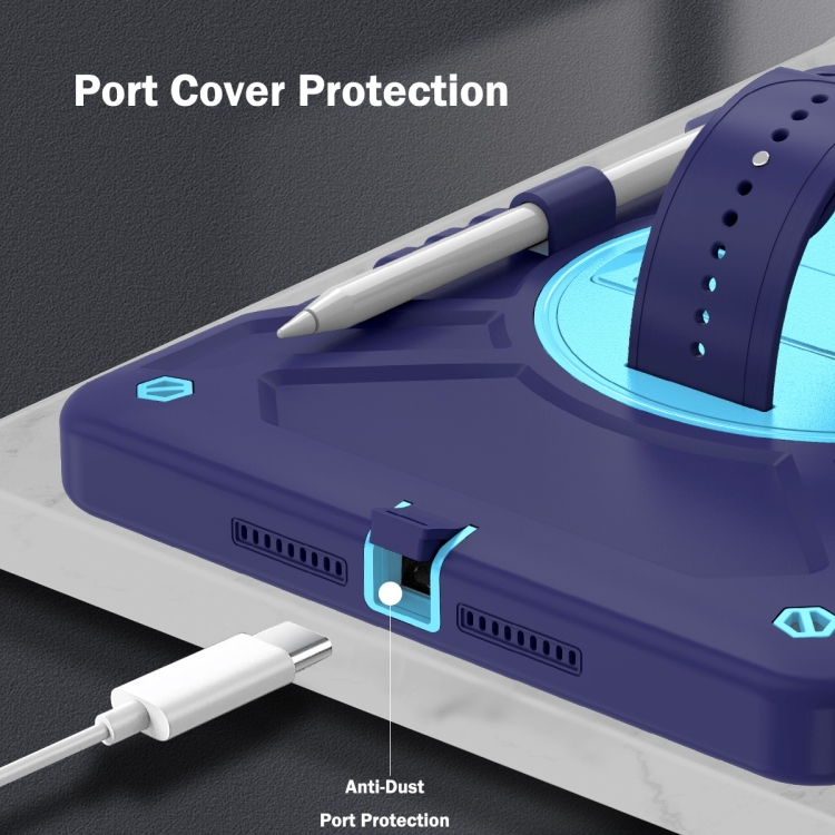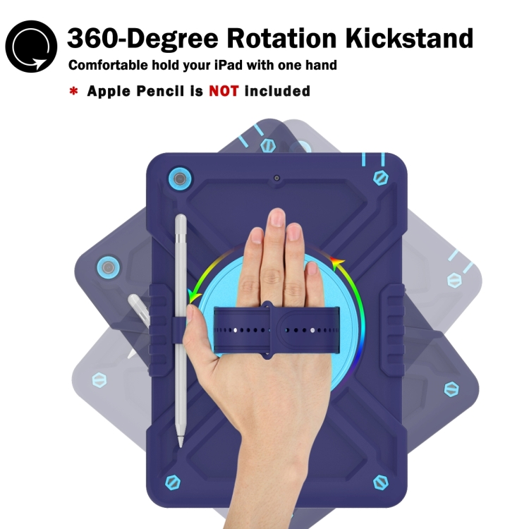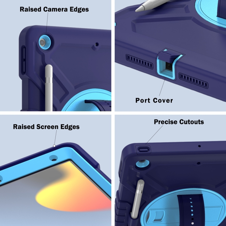 Funda para Tableta iPad 10.2 2021/2020/2019 X Rotation PC Silicona Híbrida con Correa (Azul Marino)