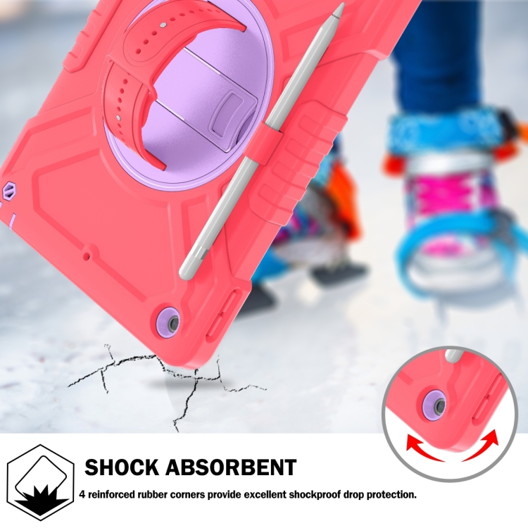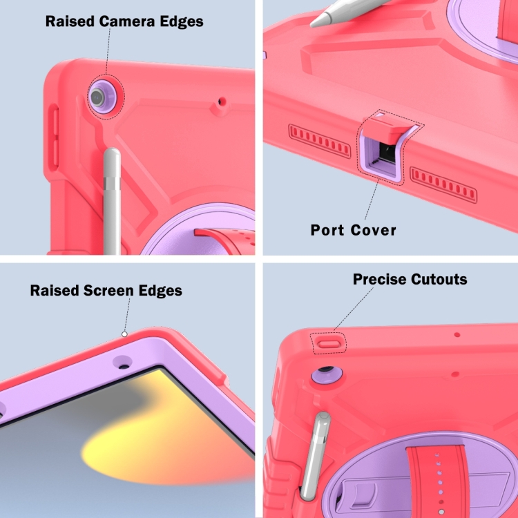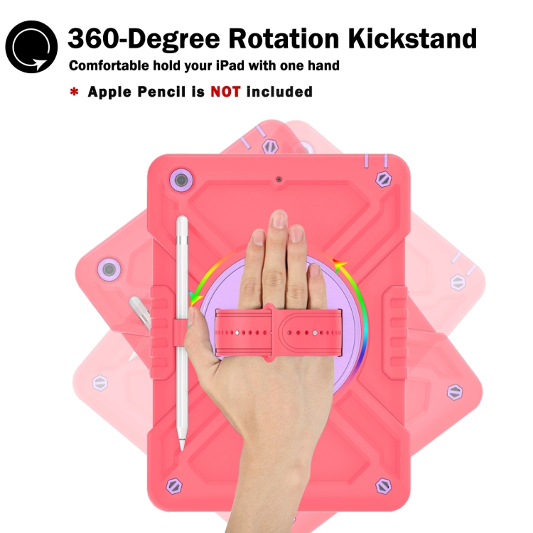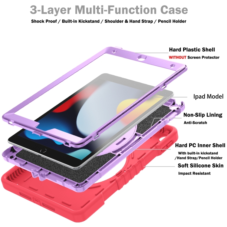 Funda para Tableta iPad 10.2 X Rotation PC Silicona Híbrida con Correa (Rojo Púrpura) (2021/2020/2019)