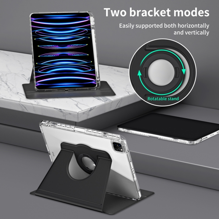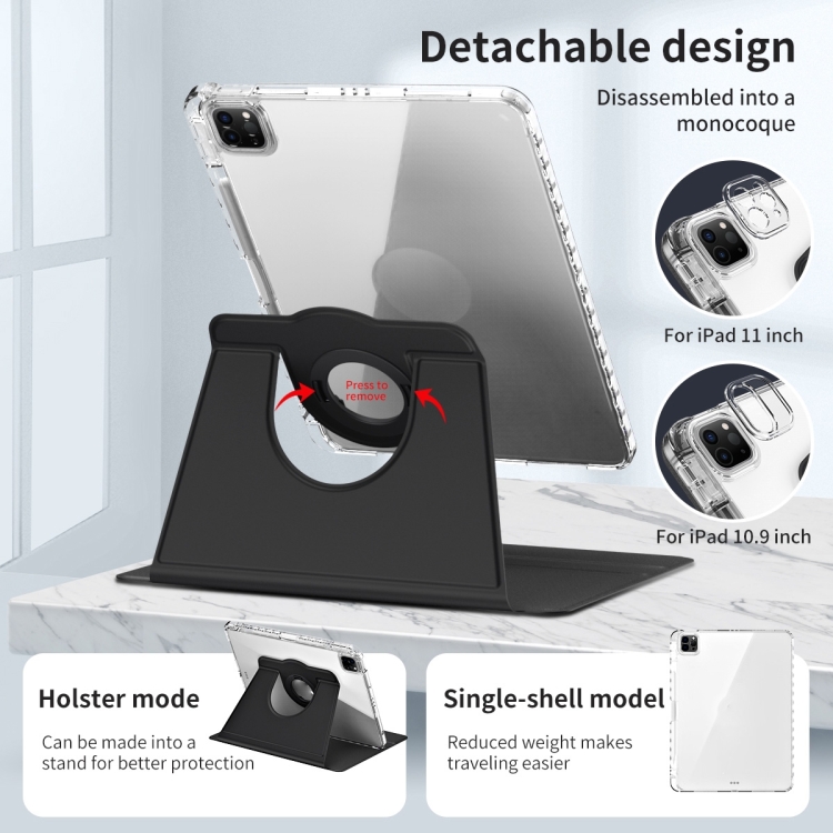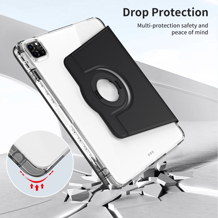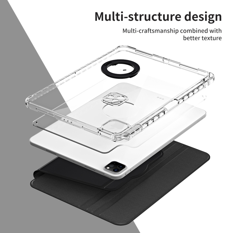 Funda para iPad Pro 11 (2024) Piel Acrílica Transparente Desmontable con Rotación 360 (Negro)